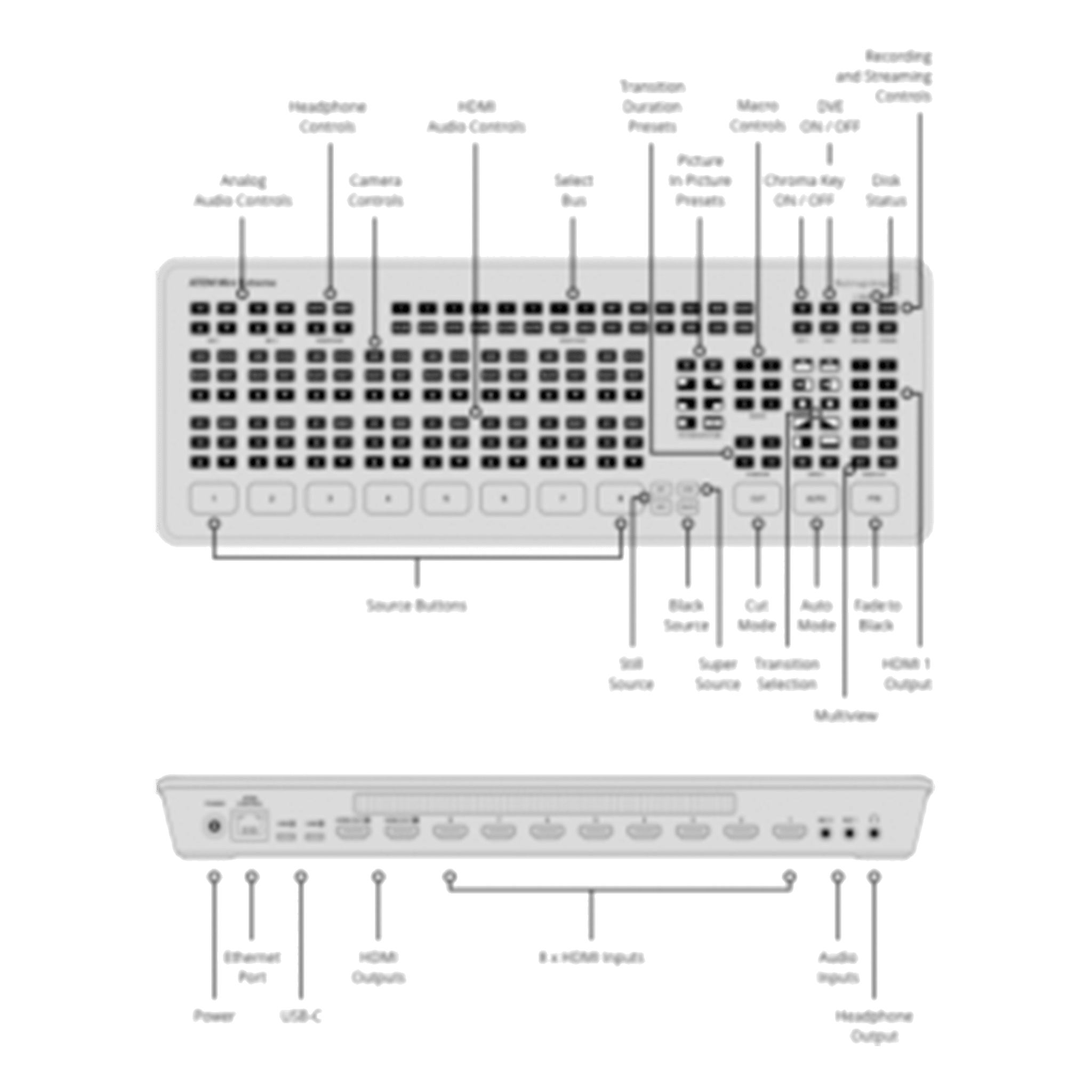 - ATEM-switchers voor liveproducties: De ATEM-lijn van live productie switchers van Blackmagic stelt gebruikers in staat om multicamera liveproducties van hoge kwaliteit te beheren. Deze switchers zijn eenvoudig te gebruiken en bieden tal van functies voor real-time schakelen tussen meerdere camerahoeken, grafieken en video's.