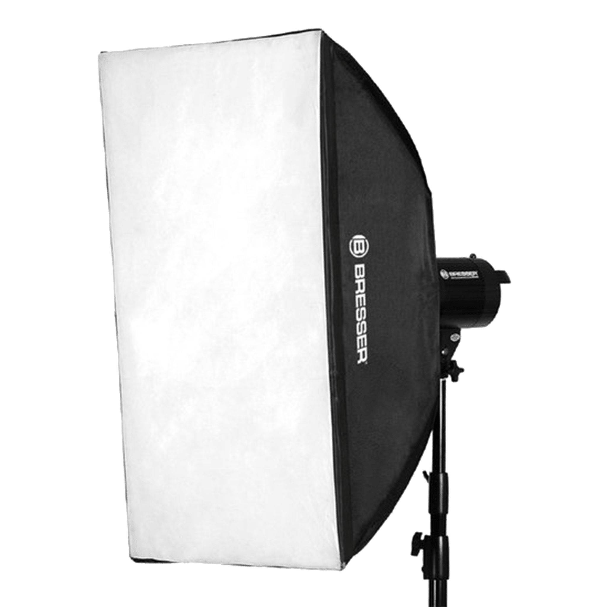 De twee meegeleverde Bresser 60×90 softboxen zijn geschikt voor het maken van verschillende typen opnamen. Door gebruik te maken van een softbox wordt kan men gecontroleerd licht op een onderwerp werpen. De voorste diffusor draagt bij een een perfecte belichting van het onderwerp, zonder hot-spots. Er wordt een extra binnen diffusor meegeleverd voor een nog zachtere belichting. De softbox is gemakkelijk te monteren. De twee meegeleverd stabiele aluminium lampstatieven hebben elk een maximale hoogte van 180 centimeter. Statieven zijn gemakkelijk en compact op te vouwen tot een minimale lengte van 83 centimeter.
