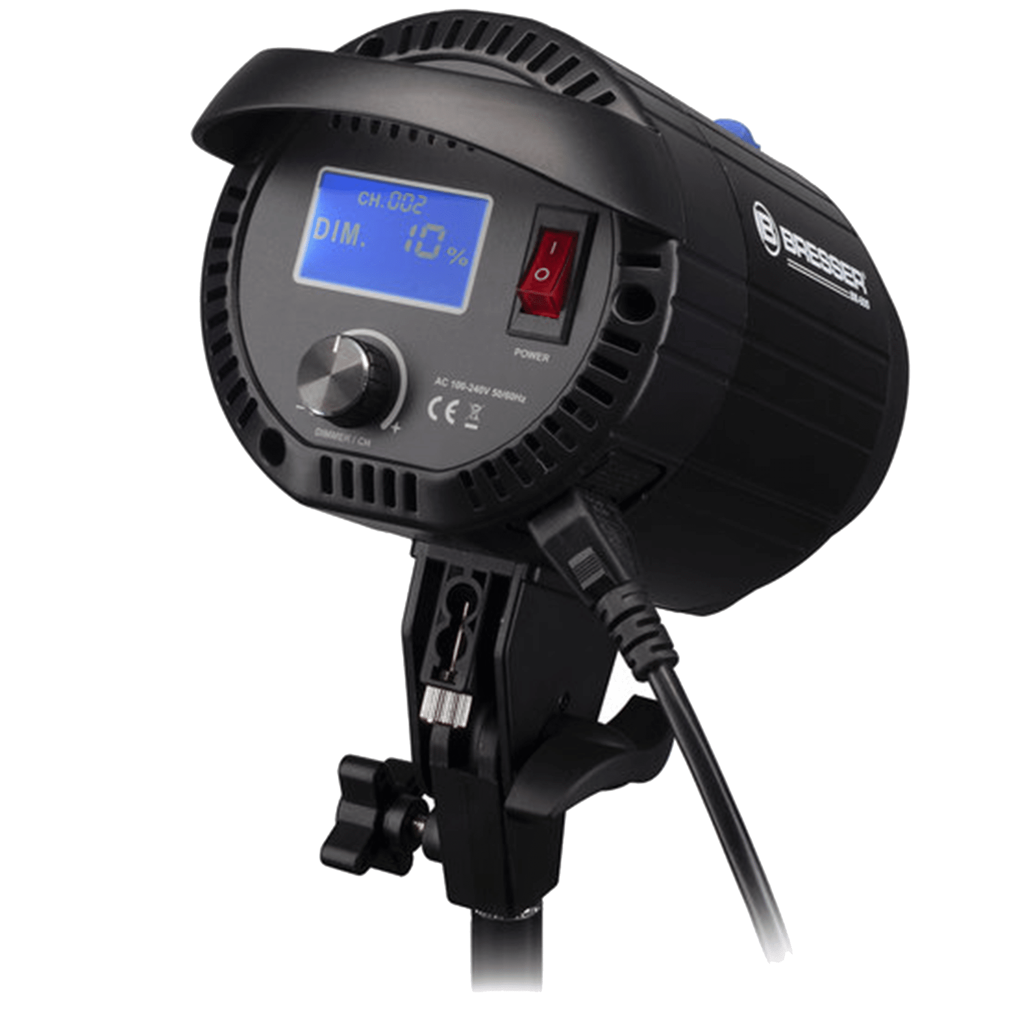 De Bresser BR-60S COB LED is een LED lamp met een vermogen van 60 Watt die ideaal is voor onder andere fotografie en video-opnames. Deze lamp heeft een kleurtemperatuur van 5600K en een CRI van meer dan 95, dat betekent dat de kleuren in de opnames zeer natuurgetrouw worden weergegeven. De lichtsterkte van de BR-60S is zeer hoog met 5400 Lux op één meter afstand van het onderwerp. Daarnaast is de helderheid van de lamp draadloos instelbaar van 10% tot vol vermogen. De COB LED kan handmatig of door middel van de meegeleverde afstandsbediening eenvoudig ingesteld worden. De 2.4G Wireless Remote Control beschikt over 99 kanalen en heeft een bereik van ongeveer 50 meter. Zo kan men meerdere lampen tegelijk aansturen of kan per lamp een aparte instelling gekozen worden. De BR-60S COB LED is voorzien van een duidelijk afleesbare LCD display waar de instellingen duidelijk afgelezen kunnen worden. De lamp heeft een volledig aluminium behuizing en is voorzien van een geluidsarme koeling. Dankzij de universele S-Bajonet Bowens Mount kan men gebruikmaken van een breed scala aan lightshapers.