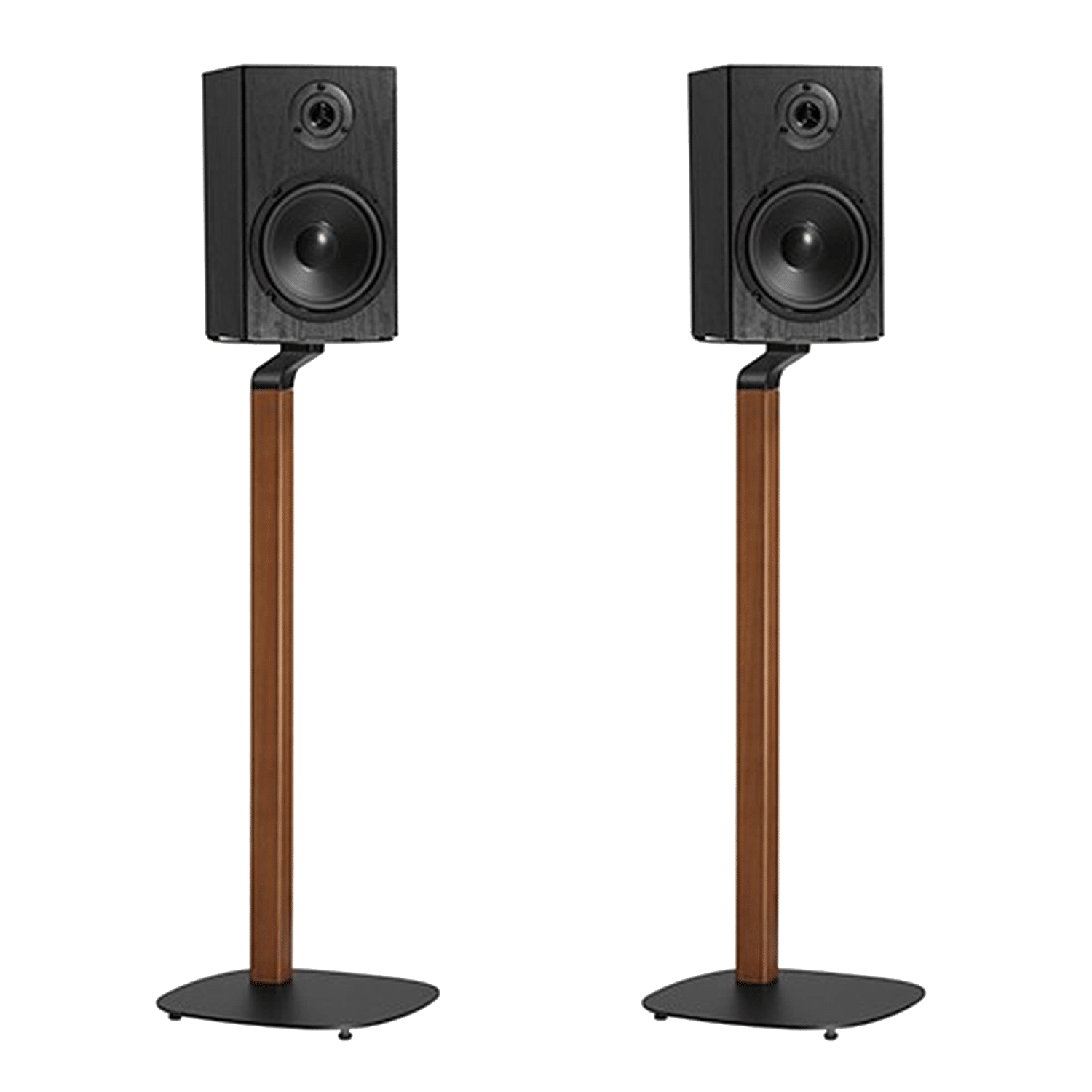 Een luxe speakerstandaard met een zeer elegante uitstraling. Met een hardhouten kolom met een walnoot kleur en een mat zwarte voet en zwarte speakerhouder, integreert deze fraaie speakerstandaard in vrijwel elke ruimte. De afmetingen van deze standaard is 338 x 338 x 781 mm. Dus de speaker zal op ongeveer 80 cm hoogte komen. In veel gevallen ligt dit op ongeveer oor hoogte en daardoor sowieso ideaal voor achter speakers, maar ook prima te gebruiken om naast de TV te plaatsen.