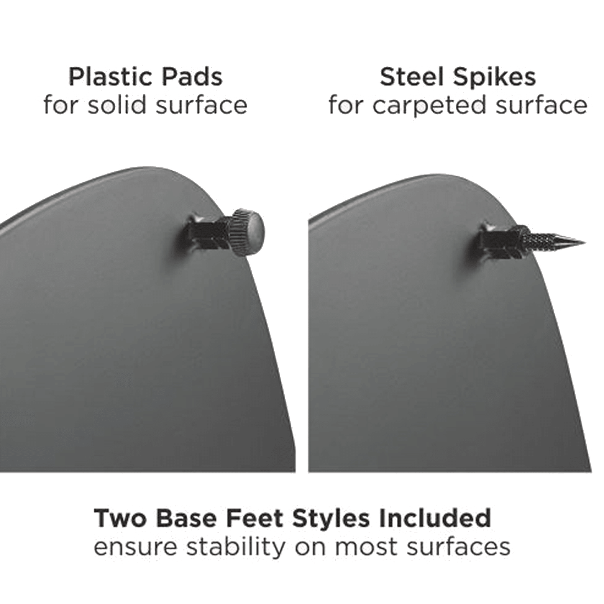 De speakerstandaards worden geleverd met zowel plastic ronde voetjes. Welke gebruikt kunnen worden op een harde vloer, zoals hout of laminaat en met spikes welke je kunt gebruiken bij vloerbedekking om een optimaal resultaat uit je speakers te halen.